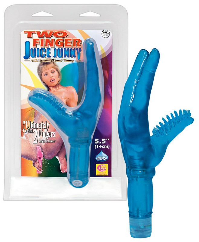 Der blaue, transparente Vibrator verwöhnt Sie mit zwei Fingern - die geschickt Ihren G-Punkt stimulieren - während der dritte Finger mit seinen Noppen den Kitzler reizt und Sie damit zur Ekstase bringt! Der handliche Vibrator ist sehr biegsam und bietet eine stufenlos regelbare Flüstervibration. Gesamtlänge 23 cm, Finger-Ø 4 cm. Spritzwassergeschützt.